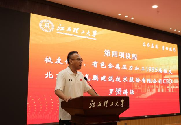 在校友分享环节,有色金属压力加工1995届校友、北京约顿气膜建筑技术股份有限公司CEO罗赟结合三十年奋斗历程,分享了从炸金花