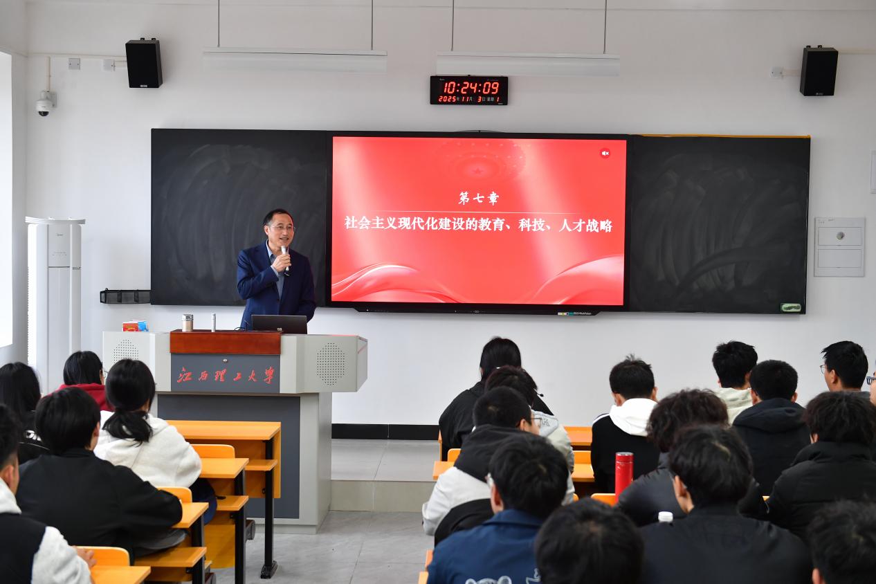 此外,思政课还以“社会主义现代化建设的教育、科技、人才战略”为题,围绕“为什么要坚持教育、科技、人才一体推进”“怎样加快建设教育强国”“怎样加快建设科技强国”“如何深入实施新时代人才强国战略”四个方面展开讲述。刘祖文指出,教育、科技、人才是全面建设社会主义现代化国家的基础性、战略性支撑,建设教育强国、科技强国、人才强国具有内在一致性和相互支撑性;教育是国之大计、党之大计,在现代化建设中具有基础性先导性全局性地位。必须坚持教育优先发展,把立德树人作为教育的根本任务,办好人民满意的教育,建设教育强国;科技是国之利器,是现代化建设中最活跃、最具革命性的因素。加快实现高水平科技自立自强,必须实施创新驱动发展战略,发挥新型举国体制优势,打赢关键核心技术攻坚战,不断增强自主创新能力,建设科技强国;人才是实现民族振兴、赢得国际竞争主动的战略资源,培养人才是国家和民族长远发展大计。必须坚持党管人才原则,大力实施人才强国战略,培养造就大批德才兼备的高素质人才,把各方面优秀人才聚到党和国家事业中来,加快建设世界重要人才中心和创新高地,聚天下英才而用之。