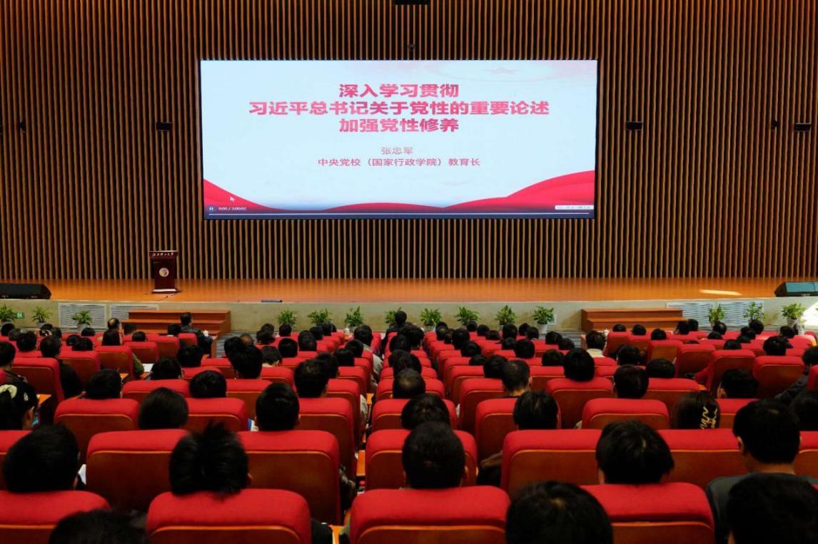 师生党员、在家校领导以及离退休党员参加培训,共同观看了中央党校(国家行政学院)教育长、教授张忠军《深入学习贯彻习近平总书记关于党性重要论述,加强党性修养》专题辅导视频。校党委副书记徐志峰作动员讲话,省委教育工委有关同志到会指导。