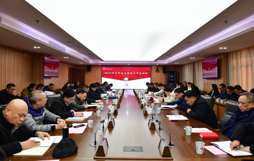 2025年本科招生录取工作总结会在三江校区濂溪楼召开。校党委书记刘祖文,校党委常委、副校长宁洁出席会议,党委宣传部、教务处、招生就业处部门负责人,各学院院长、党委(党总支)副书记及相关工作人员参加会议。会议由宁洁主持。
