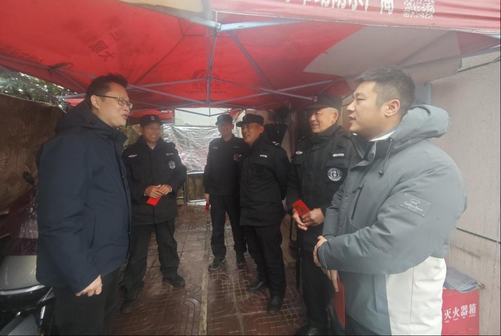 在红旗校区,校党委副书记徐志峰一行先后前往金雅居西一门门岗、校区南大门保卫门岗、水电值班点、保卫处101 室、校医院二楼诊室、原行政楼大厅门卫岗,为各岗位值班人员送上新春祝福,仔细询问校区安全保卫、后勤保障等工作落实情况,要求相关部门切实做好值班保障,让值班人员安心工作、暖心过节。