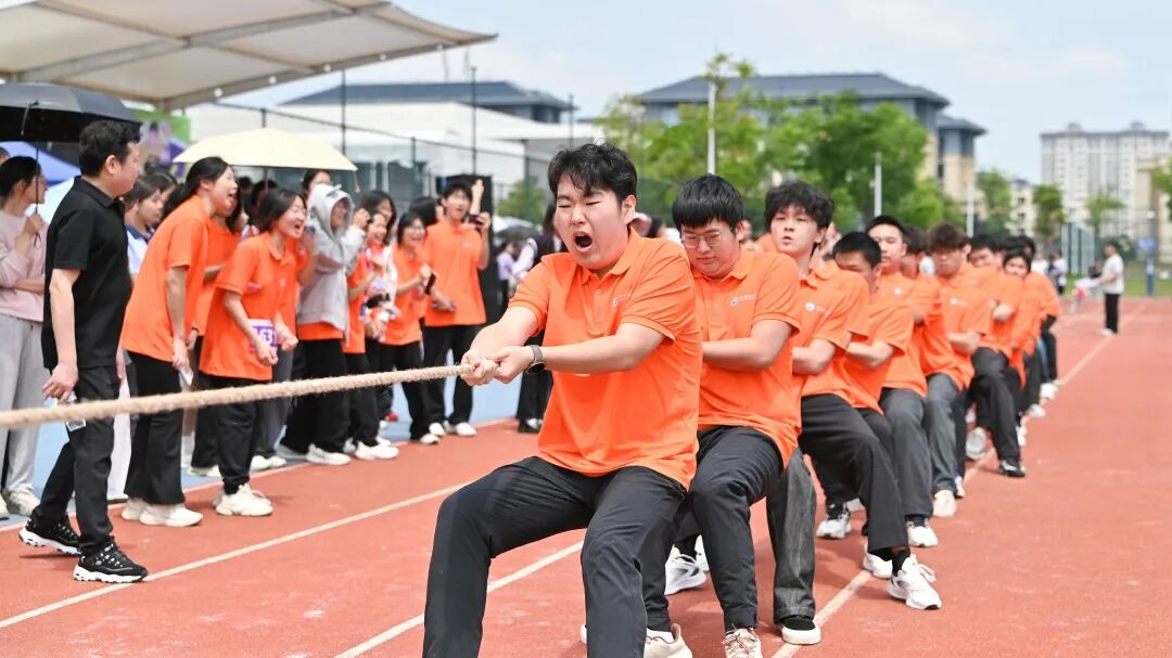 啦啦操队以喜庆欢快的舞蹈点燃现场,现场掌声雷动、气氛热烈。热身及集体带操环节结束后,趣味运动会参赛选手有序前往田径场开展比拼:在“同炉共进”项目中,队员们脚踝相绑、手臂相挽,50米的赛道上,每一步都踏出了团结的节拍;在“钨金战鼓”的鼓点中,同学们各自执掌一方鼓的朝向,每一次的鼓鸣都是团队的力量;在“矿脉齐跃”的飞跃中,同学们齐喊口号,必胜的决心在一次次同频的跳跃中激增;在“金石投趣”的瞄准中,闪耀着运动员间信任的力量“金石”;在“稀土争锋”项目中,运动员们紧握绳索、全力后拉,绳索中间的标记来回拉锯,每一次偏移都牵动着全场观众的心。