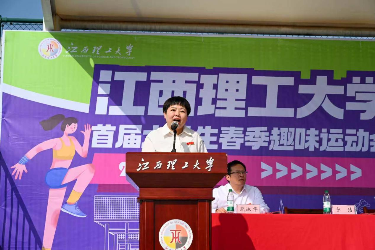 校党委常委、副校长宁洁在开幕辞中指出,希望以开展春季趣味运动会为契机,通过更密集、更丰富的体育活动,构建更高水平的校园体育公共服务体系,将“健康第一”的理念深深植根于每一位师生心中,并通过打造“健康理工”特色校园文化,让运动场成为凝聚人心、展示风采、培育健全人格的精彩舞台。她还向同学们提出三点希望:一是树立“健康第一”的理念,主动走向操场;二是弘扬“敢于争先”的精神,积极投身赛事;三是养成“终身锻炼”的习惯,锤炼意志品格。