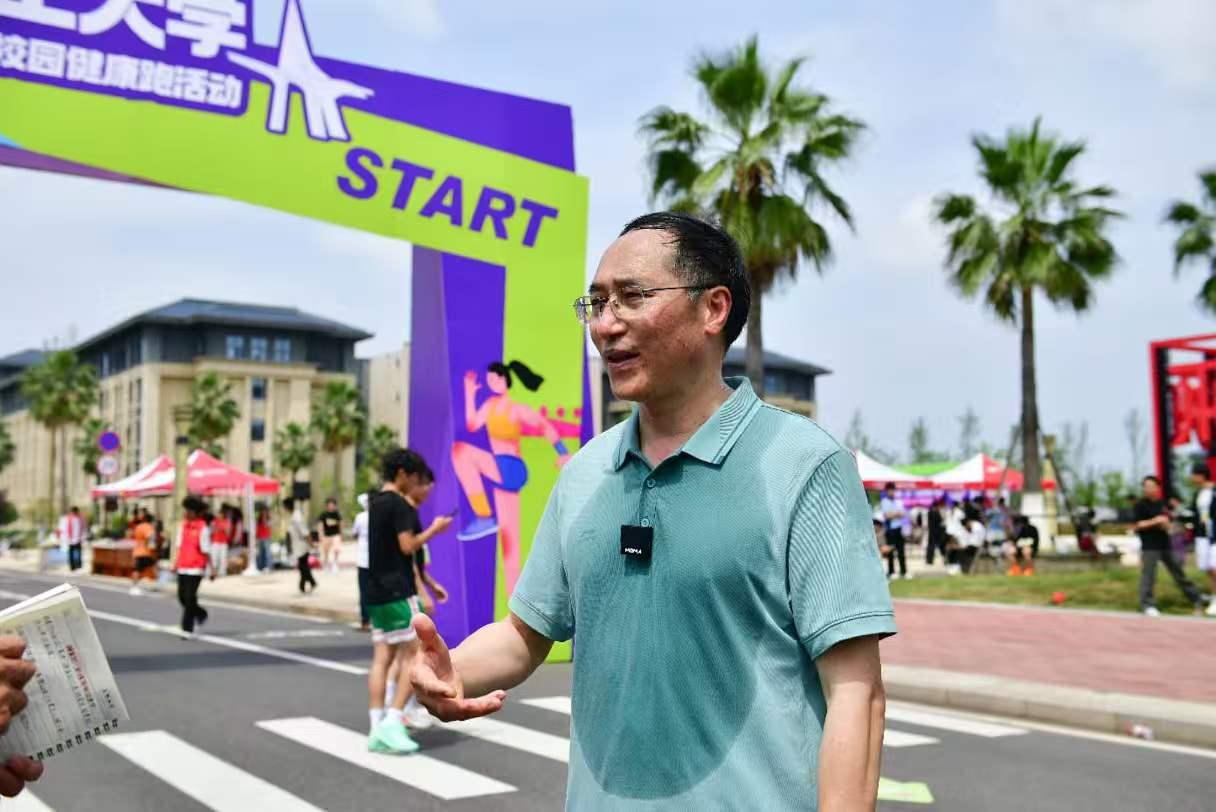 刘祖文书记与大家一同参与10.25 千米拾月启航路线健康跑。他表示,“健康跑是学校体育运动体系的重要组成部分,既能锤炼意志品质,也能增进师生交流互动,营造快乐向上的运动氛围。希望同学们尽情享受运动的快乐,在坚持中收获成长,以昂扬姿态奔跑在青春赛道上。”