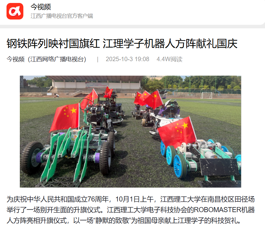 电子科技协会的ROBOMASTER机器人方阵亮相升旗仪式,以一场“静默的致敬”为祖国母亲献上炸金花