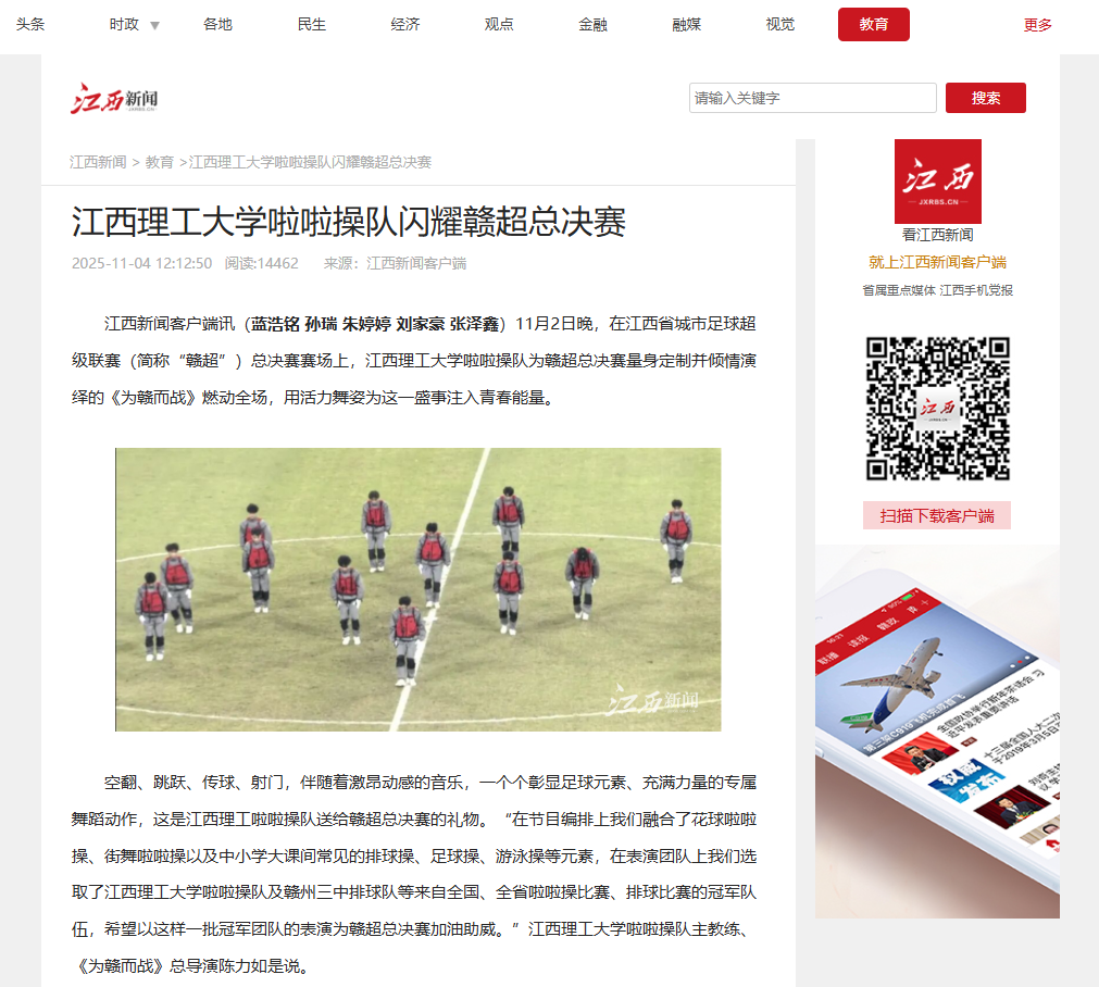 啦啦操队为赣超总决赛量身定制并倾情演绎的《为赣而战》燃动全场,用活力舞姿为这一盛事注入青春能量。