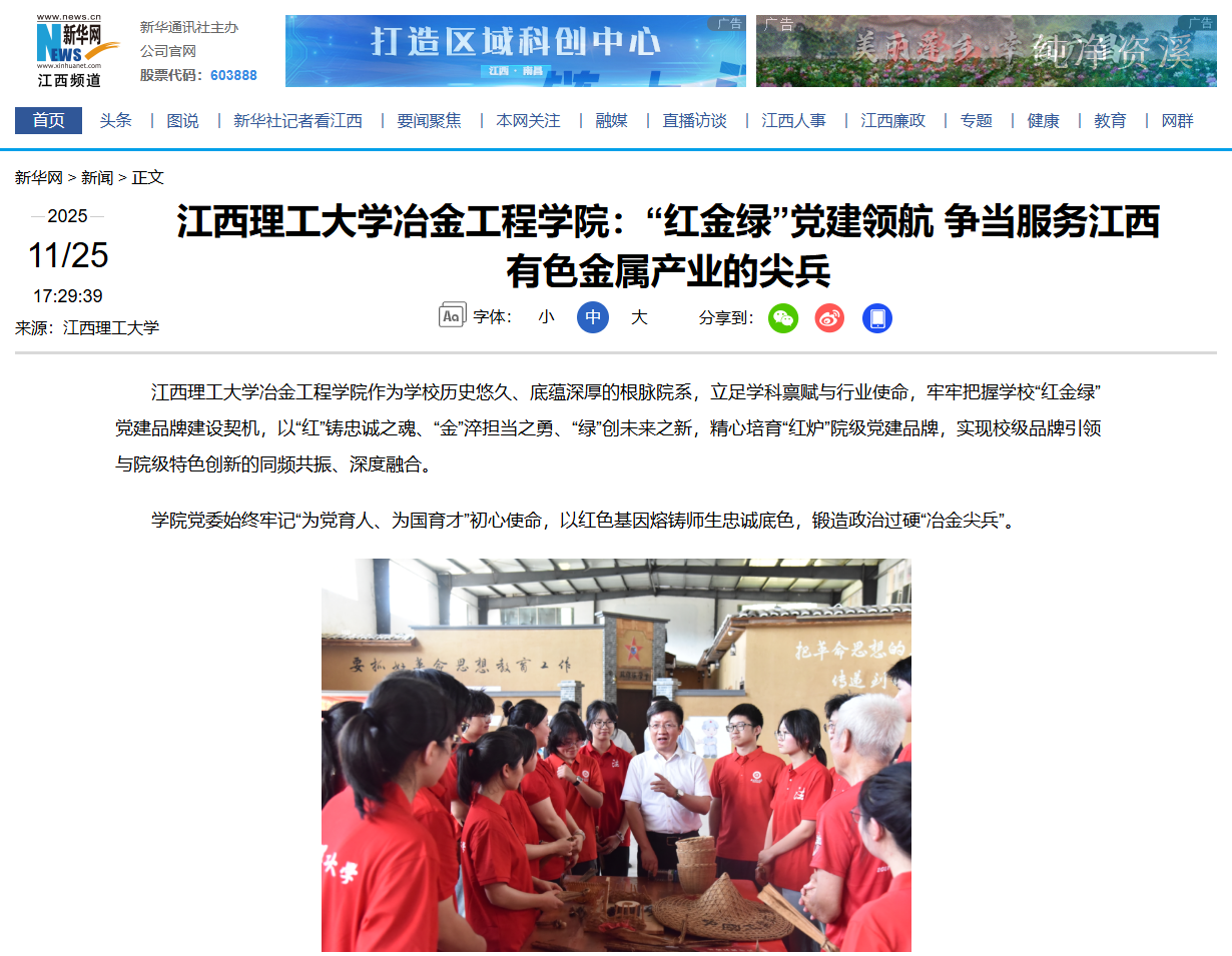 构建产教融合“淬炼场”。与崇义章源钨业等多家企业开展党建联建,以党建链贯通产业链、人才链、科技链,打造产学研用深度融合的新工科人才培养体系,获批2个工信部校企协同育人基地,牵头组建江西省有色金属卓越工程师学院,实现人才培养与产业需求无缝对接。