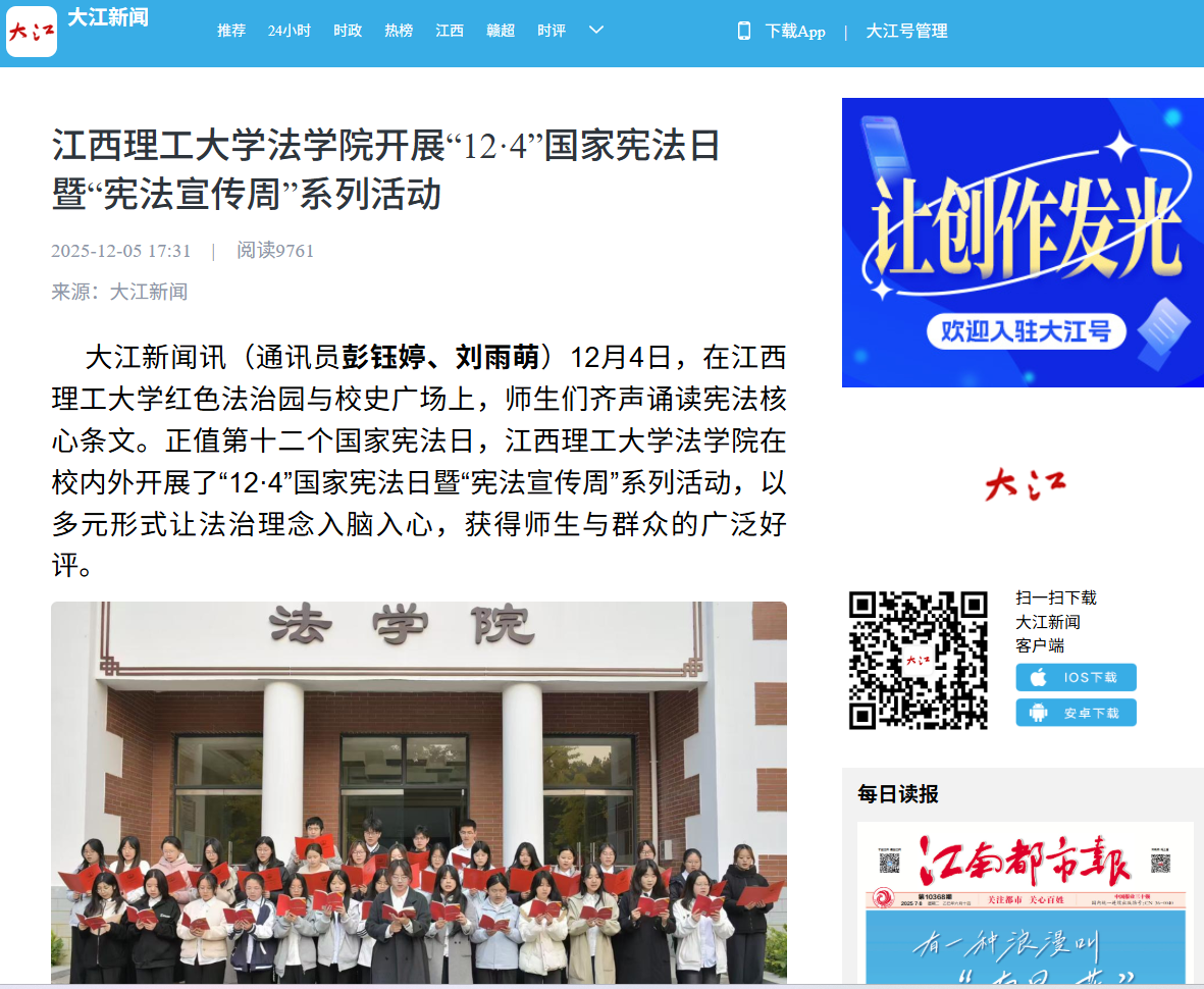 红色法治园与校史广场上,师生们齐声诵读宪法核心条文。正值第十二个国家宪法日,炸金花