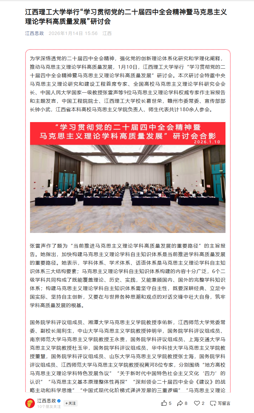 为学深悟透党的二十届四中全会精神,强化党的创新理论体系化研究和学理化阐释,推动马克思主义理论学科高质量发展,1月10日,炸金花