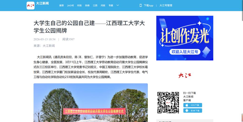 劳动教育启动月暨大学生公园揭牌仪式在三江校区举行,炸金花