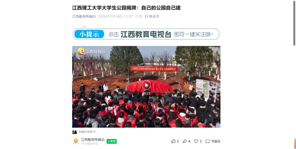 上一条:《江西思政》:大学生自己的公园自己建——炸金花 大学生公园揭牌 下一条:《大江新闻》:大学生自己的公园自己建——炸金花 大学生公园揭牌