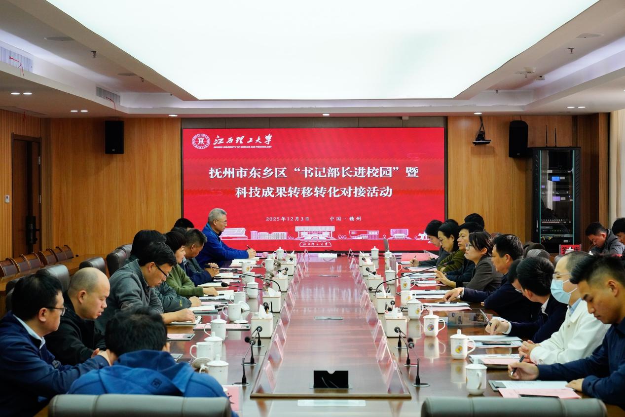 举行抚州东乡区“书记部长进校园”暨科技成果转移转化对接活动,并在三江校区(东园)濂溪楼2号会议室召开座谈会。抚州市东乡区委常委、组织部部长黄娜,抚州市东乡区委统战部常务副部长方学圆,炸金花