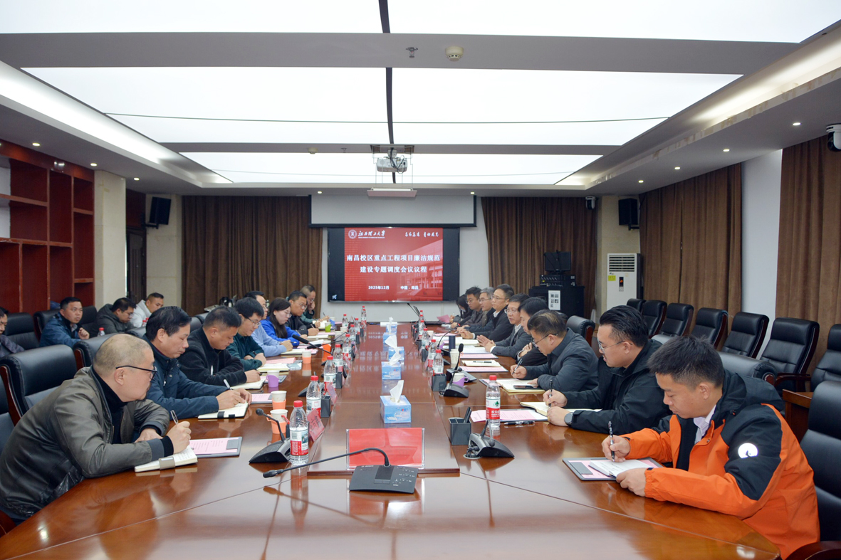 本网讯 12月16日,校党委常委、纪委书记、监察专员刘飞在南昌校区主持召开重点工程项目廉洁规范建设专题调度会。南昌校区管委会分管日常工作的副主任兼党委副书记潘春荣、南昌校区管委会副主任许祖华、校纪委监督检查室主任叶兴鹏及南昌校区研究生公寓项目和十号学生公寓项目各参建方代表参加会议。