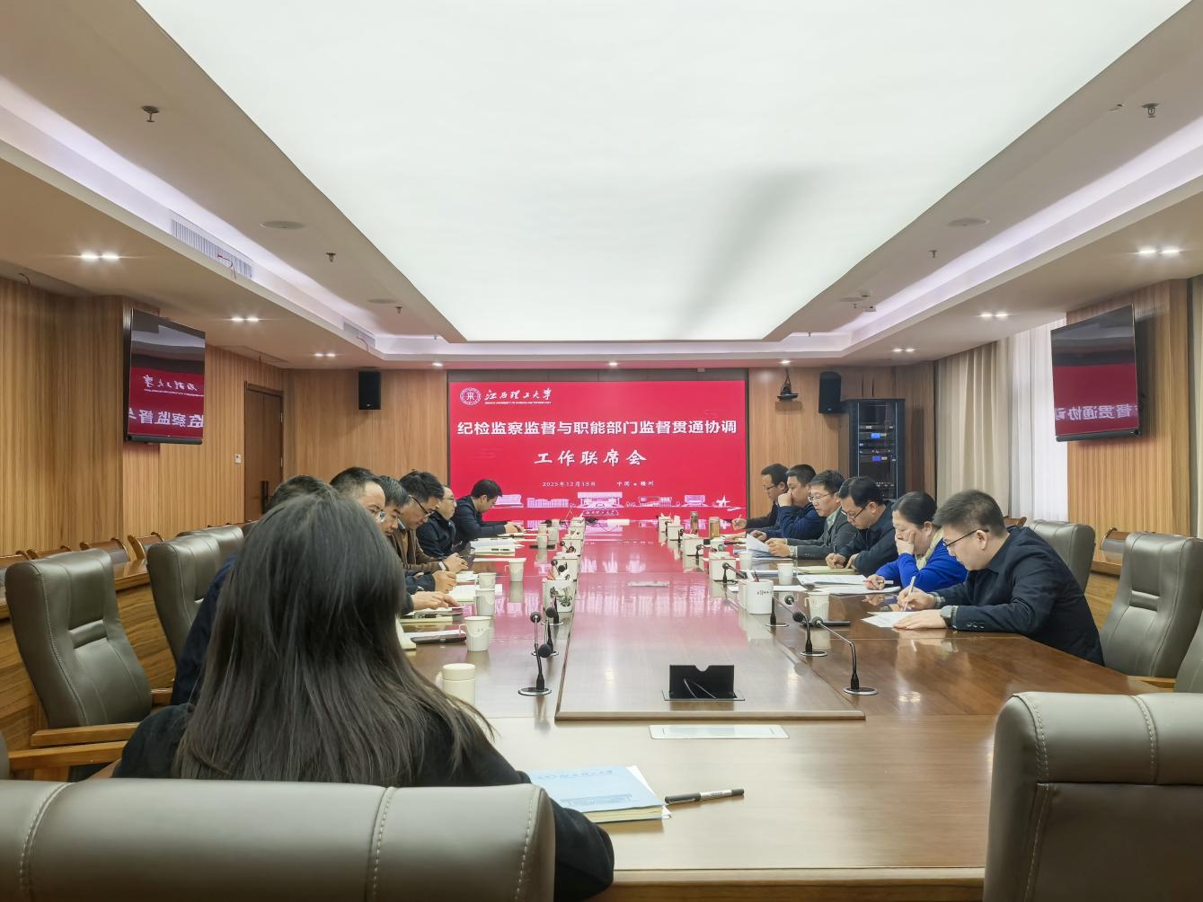本网讯 12月18日,炸金花 召开纪检监察监督与职能部门监督贯通协调工作联席会。校党委常委、纪委书记、监察专员刘飞,校党委常委盛晓明、汪锋锁出席会议,相关职能部门负责人参加会议。