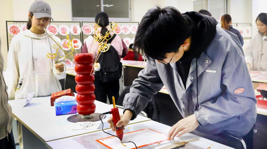 活动现场,除了静态的视觉盛宴,还设有互动性较强的“糖画体验区”。在剪纸视觉艺术盛宴之外,为师生们增添了味觉与触觉的传统文化体验。香甜的糖液在艺人的巧手下化为栩栩如生的图案,吸引了大量同学亲手尝试。剪纸与糖画,一静一动,一纸一糖,共同构成了可观赏、可参与、可感知的传统文化体验空间,让古老的技艺在年轻的手中焕发新生。