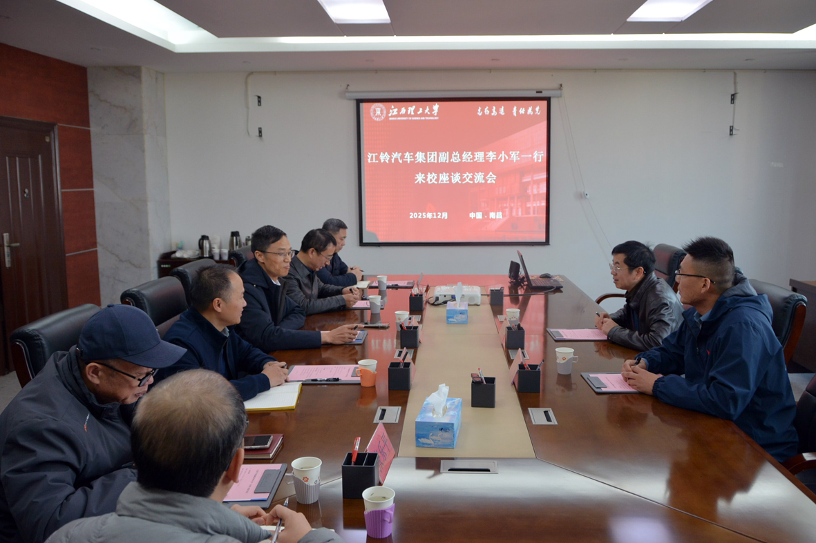 本网讯 12月30日,江铃汽车集团副总经理李小军一行来访。南昌校区管委会分管日常工作的副主任兼党委副书记潘春荣在南昌校区会见了李小军一行。国际创新研究院常务副院长兼能源与机械工程学院院长帅词俊、副院长李亮星等参加会议。